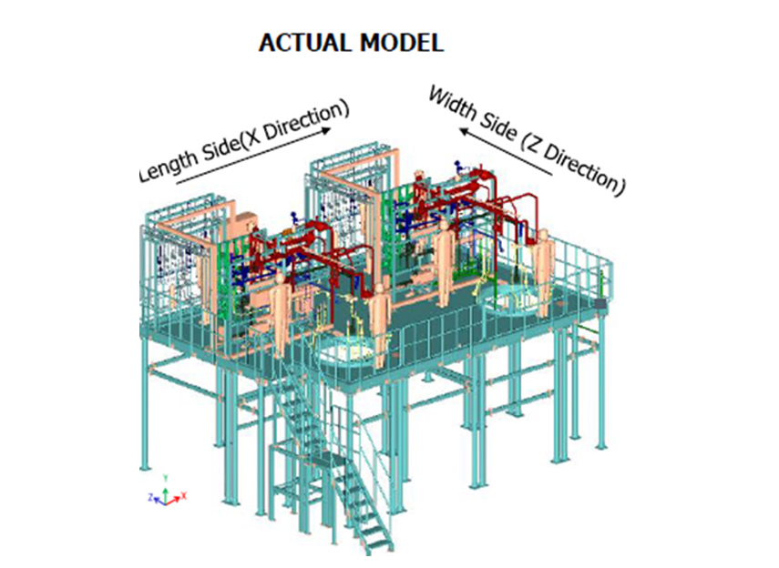 To carry out the structural integrity analysis of skid platform to check displacement experienced by vertical columns when horizontal loads are applied (X & Z Directions) as per below conditions.